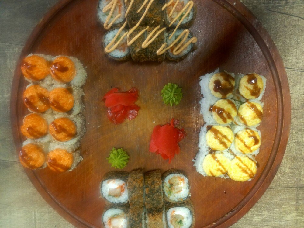 Запеченный ролл Кардинал, запеченный ролл Гонконг, жареный ролл Нагоя, жареный ролл Нагасаки. Соевый соус
